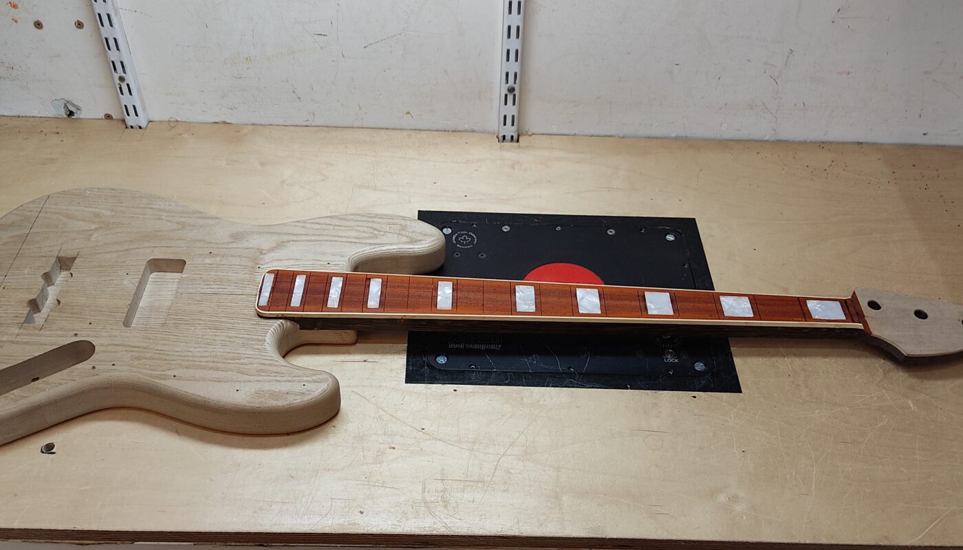 La tête du manche à un placage Sassafras, qui rappelle l’essence du corps.